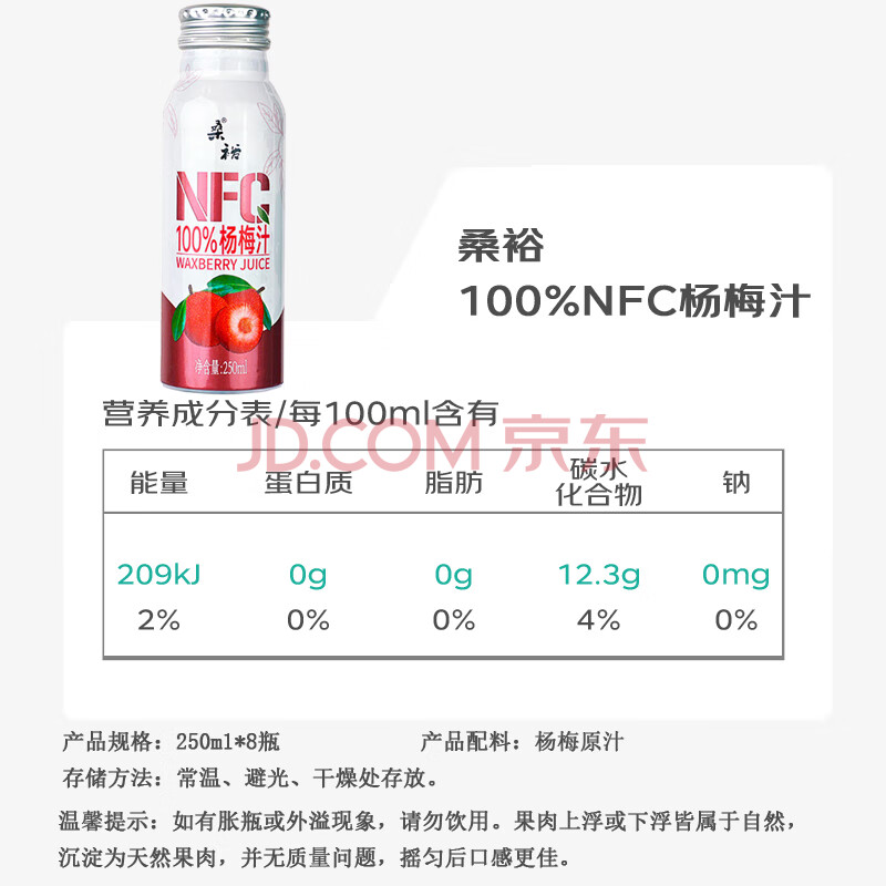 商品名称:桑裕 NFC100%鲜果冷压榨纯杨梅果汁250ml*8瓶 原味无添加 1号会员店