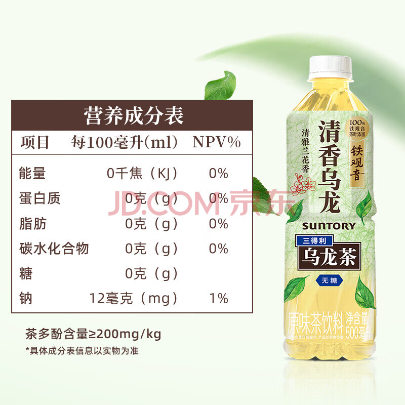 商品名称:三得利(Suntory) 清香乌龙铁观音(无糖)500ml*15瓶 箱装