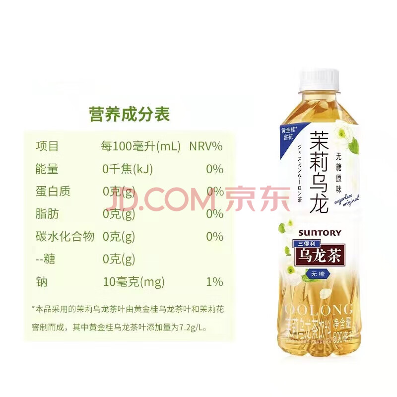 商品名称:三得利(Suntory) 无糖茉莉乌龙茶 0糖0脂茶饮料 500mI*15瓶 箱装