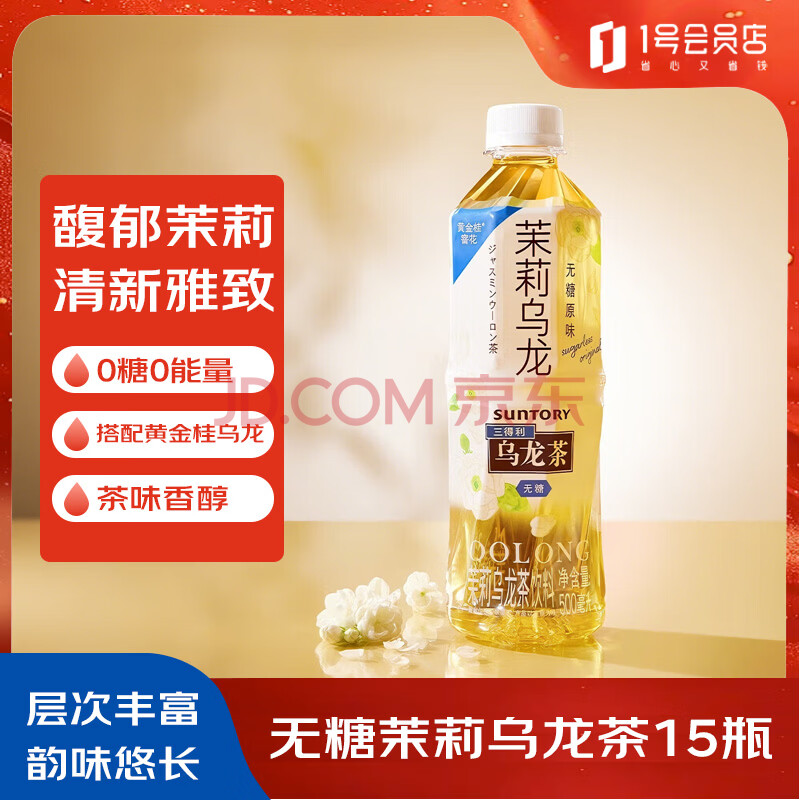 > 三得利(Suntory) 无糖茉莉乌龙茶 0糖0脂茶饮料 500mI*15瓶 箱装