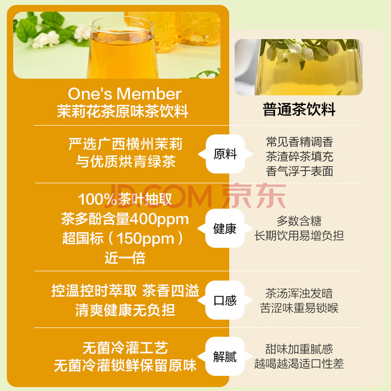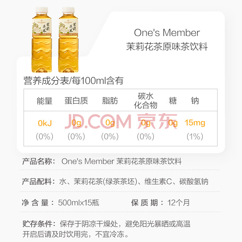 商品名称:1号会员店(One's Member)茉莉花茶 0糖0脂0卡原味无糖茶饮料茶叶饮品 500ml*15瓶整箱