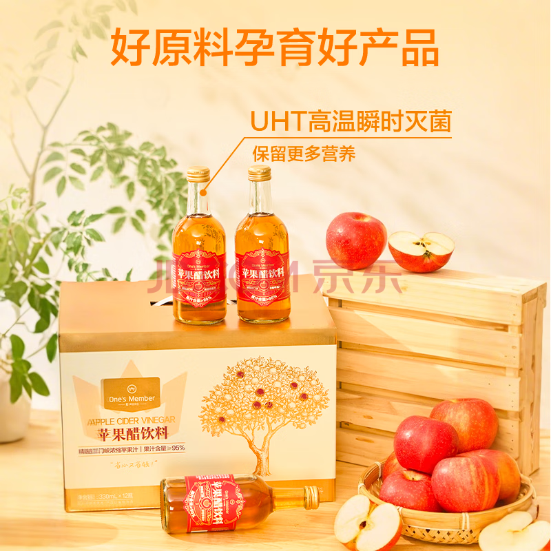 > 1号会员店苹果醋果汁饮料330ml*12瓶整箱礼盒装 发酵型苹果醋 0脂肪解腻