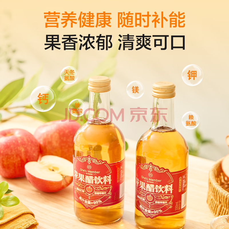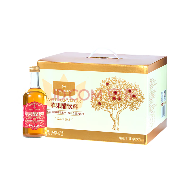 商品名称:1号会员店苹果醋果汁饮料330ml*12瓶整箱礼盒装 发酵型苹果醋 0脂肪解腻