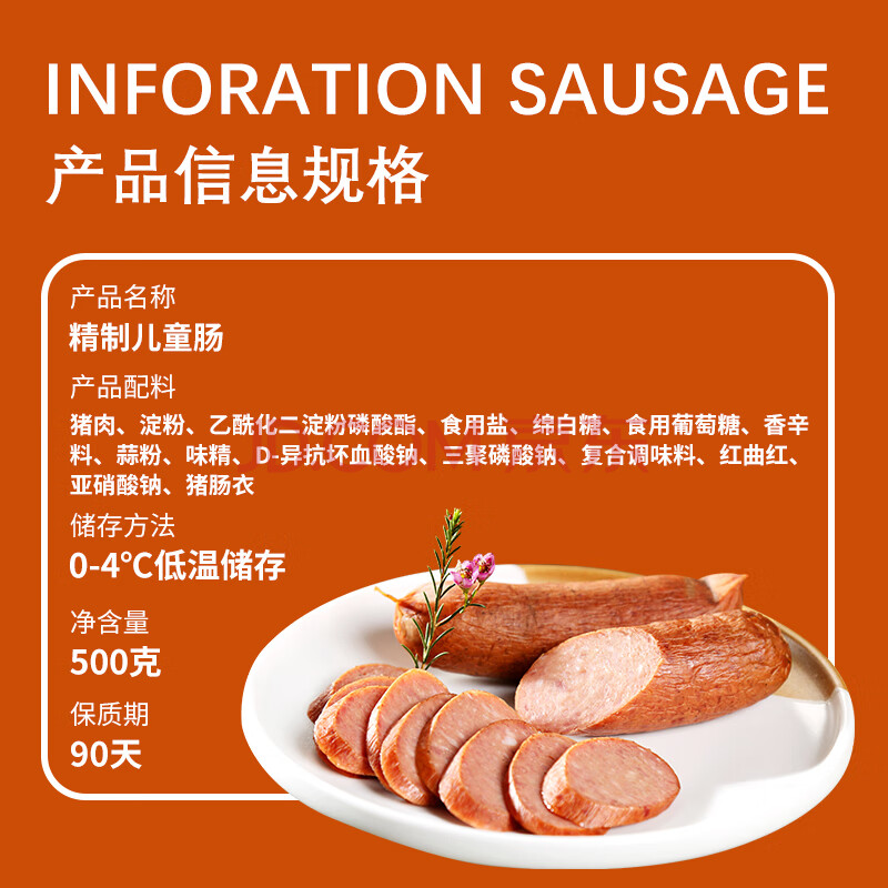 商品名称:达生精制儿童肠500g 哈尔滨红肠东北特产即食香肠方便速食送礼
