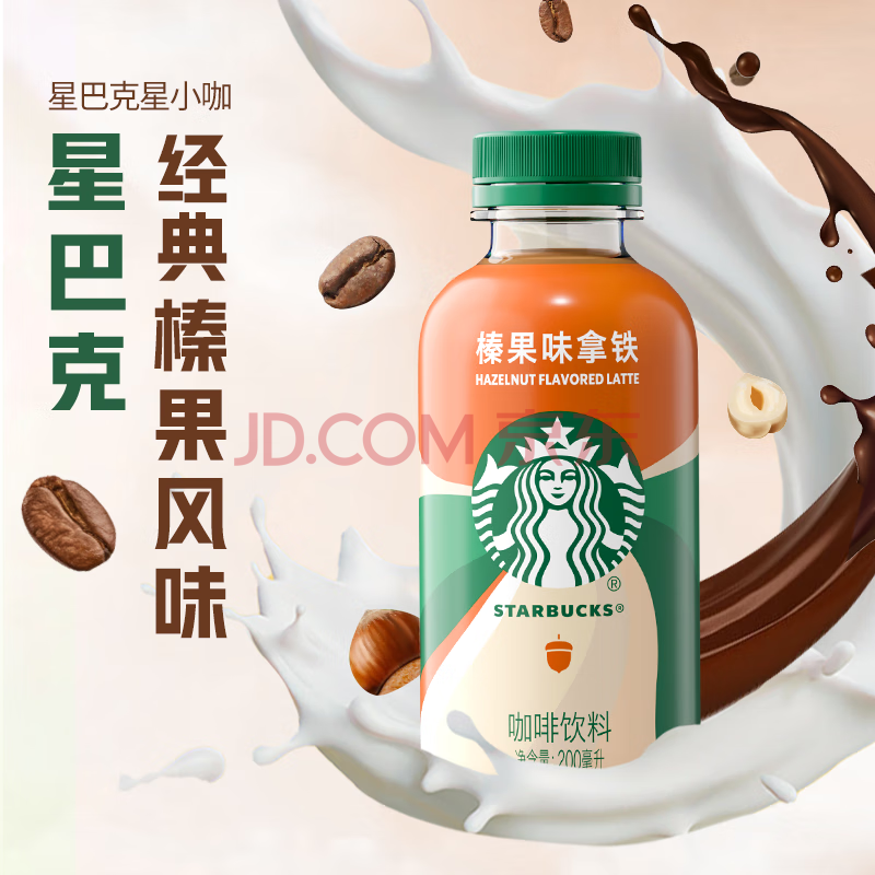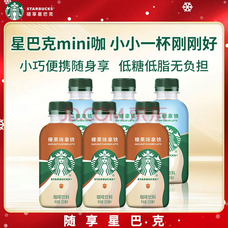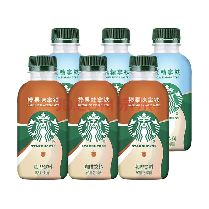 > 星巴克(Starbucks)星小咖榛果味+低糖拿铁混合6瓶装 即饮咖啡饮料 办公室提神便携