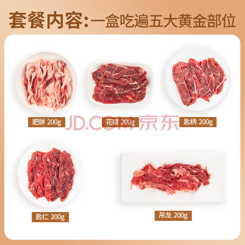 商品名称:锦鲜生贵州高山黄牛潮汕火锅五拼 200g*5 净重共2斤