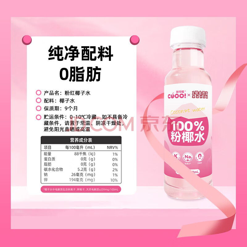 商品名称:酷可椰天然0色素粉红椰子水300ml*15瓶泰国进口香水椰1号店特供