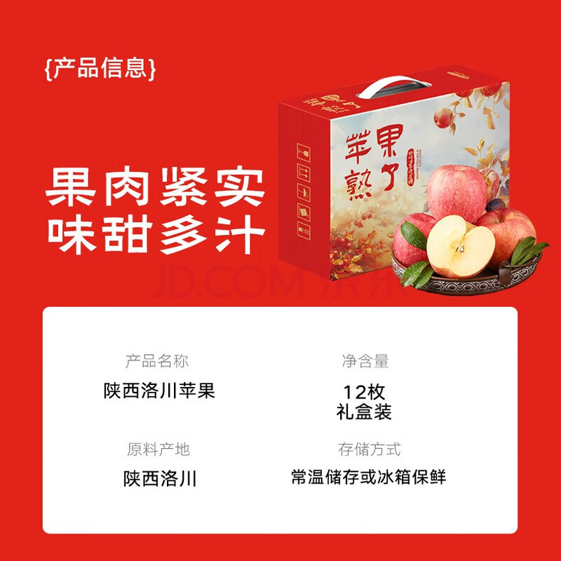 商品名称:西域美农正宗陕西洛川红富士苹果2025新果12枚2.4kg礼盒200+脆甜 源头直发