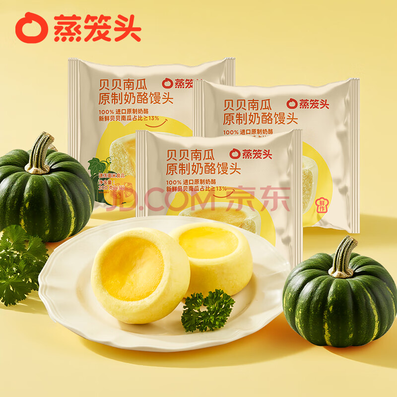 > 蒸笼头贝贝南瓜原制奶酪馒头200g4只*3袋共600g12只 儿童营养速食早餐