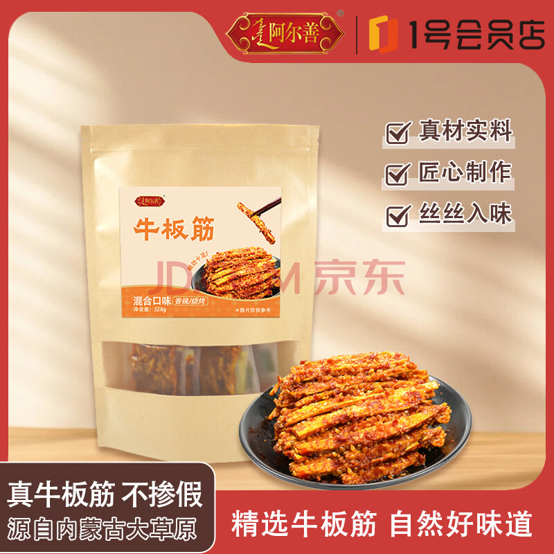 商品名称:阿尔善牛板筋 混合口味(烧烤味&香辣味)328g