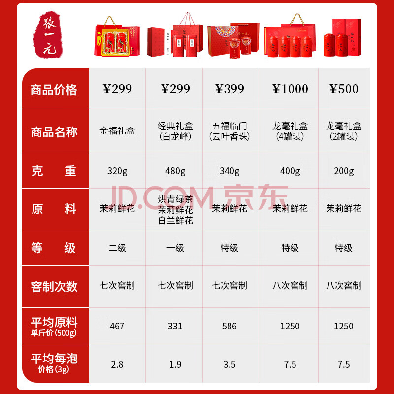 水饮冲调---茗茶---茉莉花茶张一元茉莉花茶礼盒 特级茉莉龙毫礼盒(4罐装)400g 1号会员店