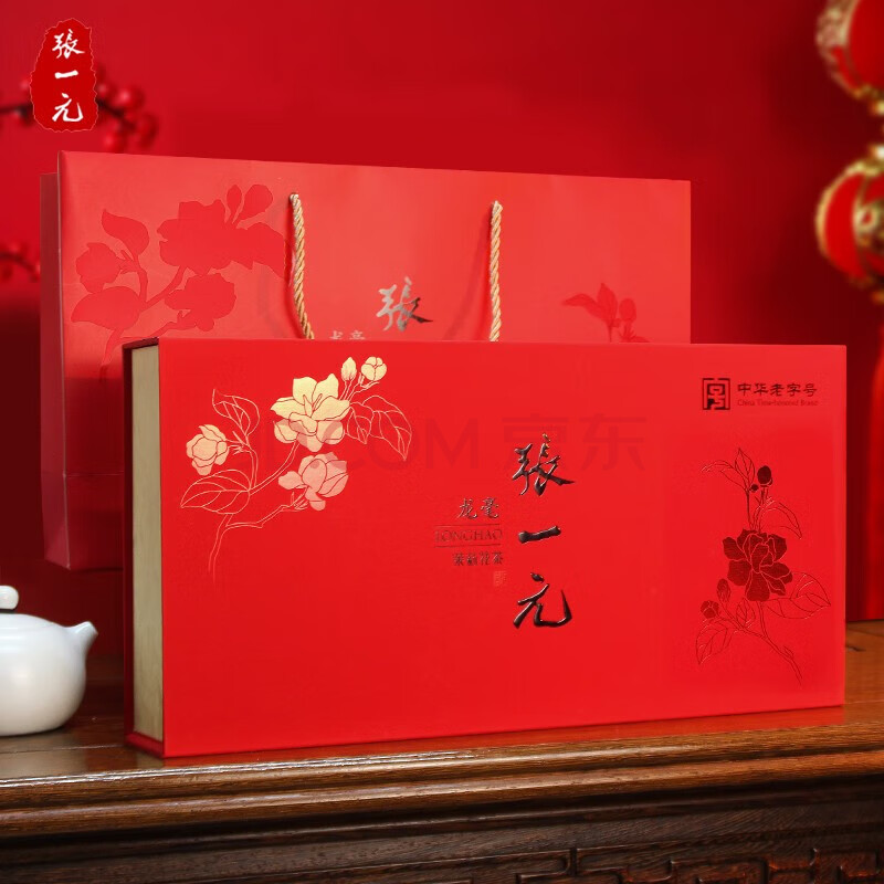 > 张一元特种至尊装龙毫茶叶礼盒老北京茉莉花茶配礼袋节日送礼优选400g