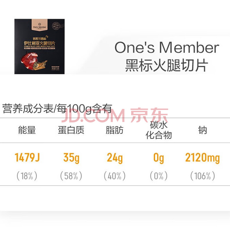 商品名称:1号会员店 西班牙黑标火腿片 50g 伊比利亚黑猪即食西式三明治佐餐肉食