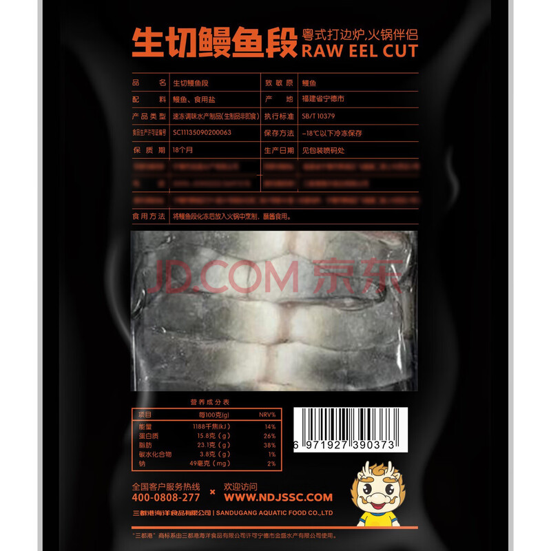 商品名称:三都港生切鳗鱼段200g*3包 活鳗鱼 整条现杀 生鲜海鲜水产 源头直发