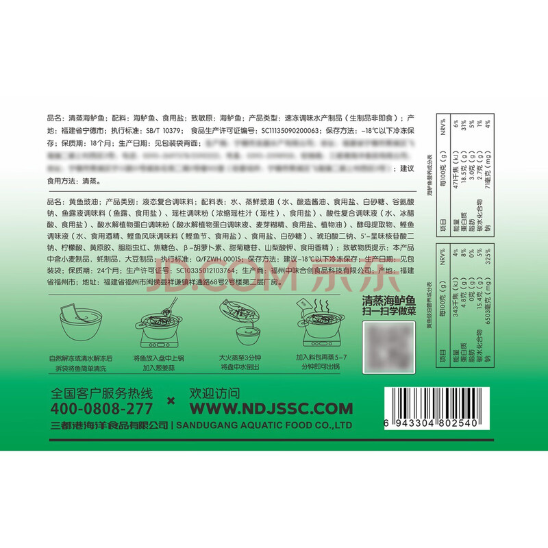 商品名称:三都港三去清蒸海鲈鱼555g*3包(含料包) 生鲜鱼类 海鲜水产 源头直发