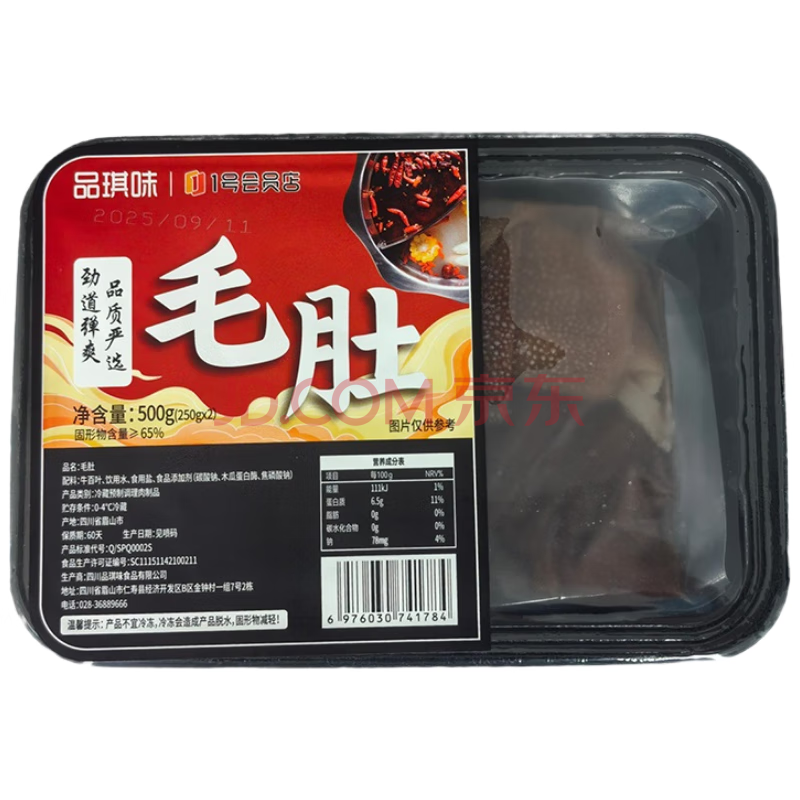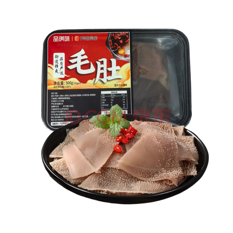 商品名称:品琪味冷藏黄牛毛肚250g*2固形物65%火锅食材麻辣烫牛肚牛百叶毛血旺