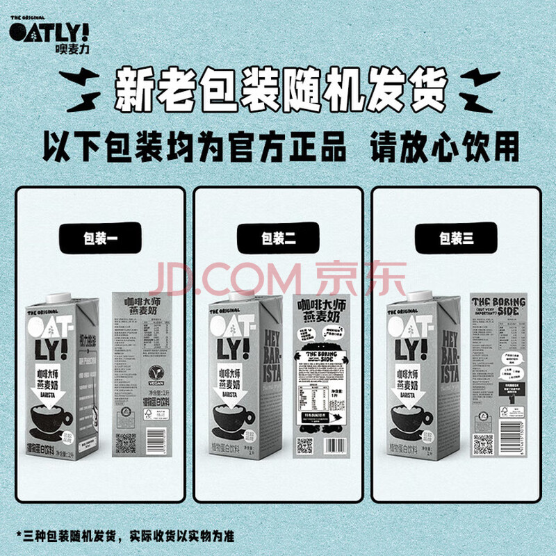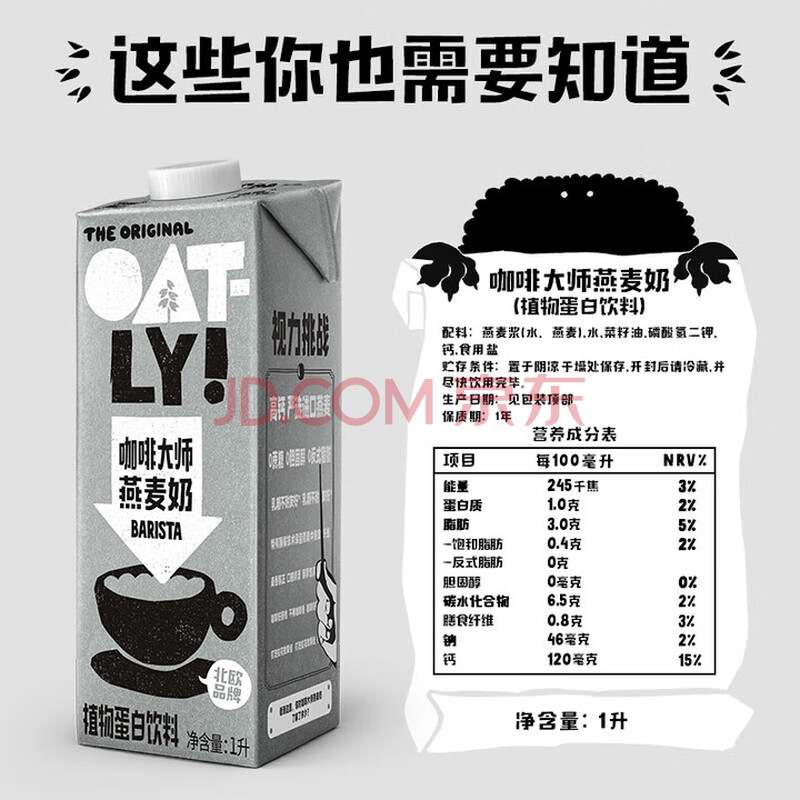 商品名称:OATLY噢麦力 咖啡大师燕麦奶 咖啡伴侣植物蛋白饮料1L*6箱装 赠勺子