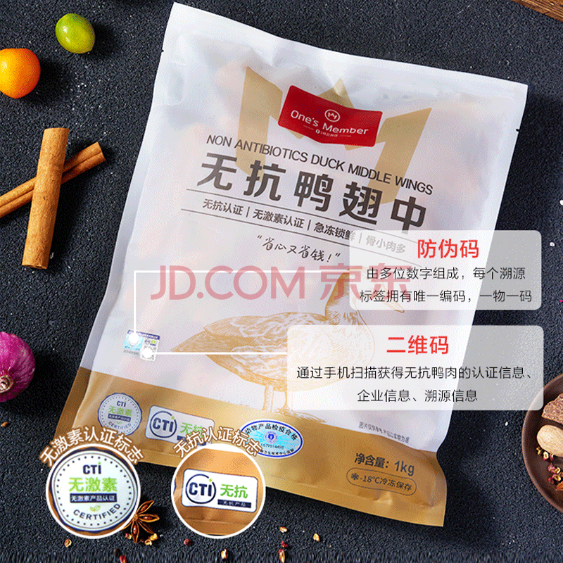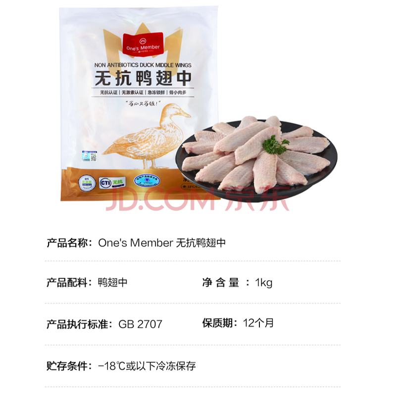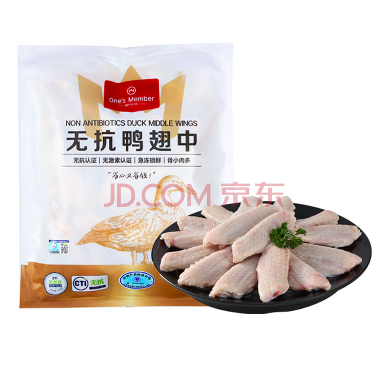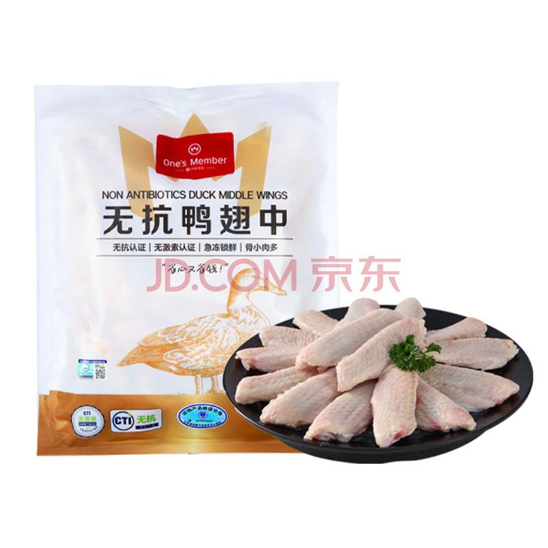 商品名称:1号会员店 无抗鸭翅中 出口级品质精切鸭翅中酱卤烧烤新鲜鸭肉食材 净重2斤