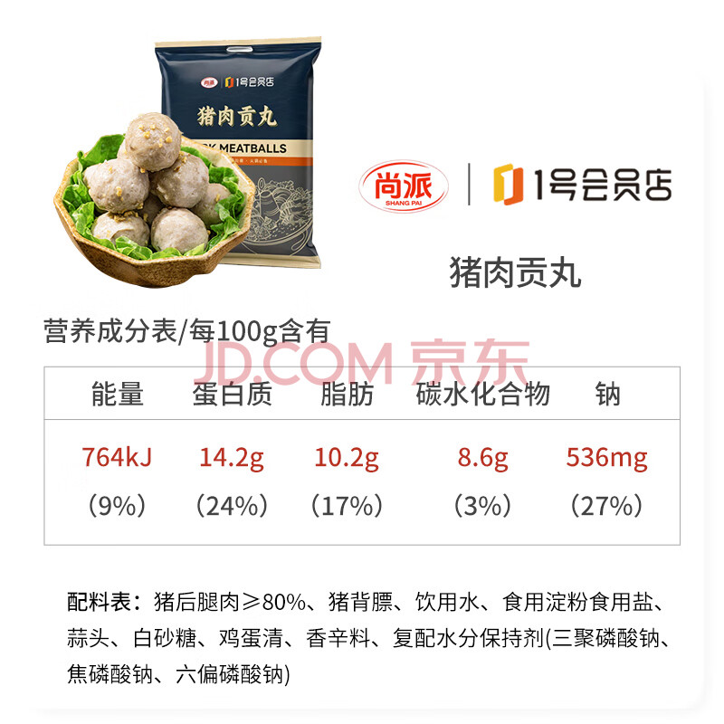 商品名称:尚派猪肉贡丸1000g(250g*4) 冷冻 猪肉后腿 贡丸火锅麻辣烫关东煮食材