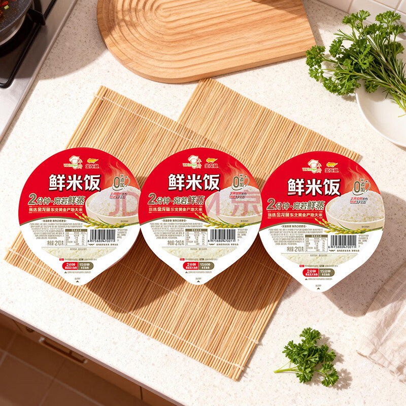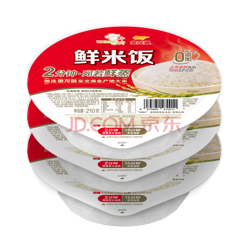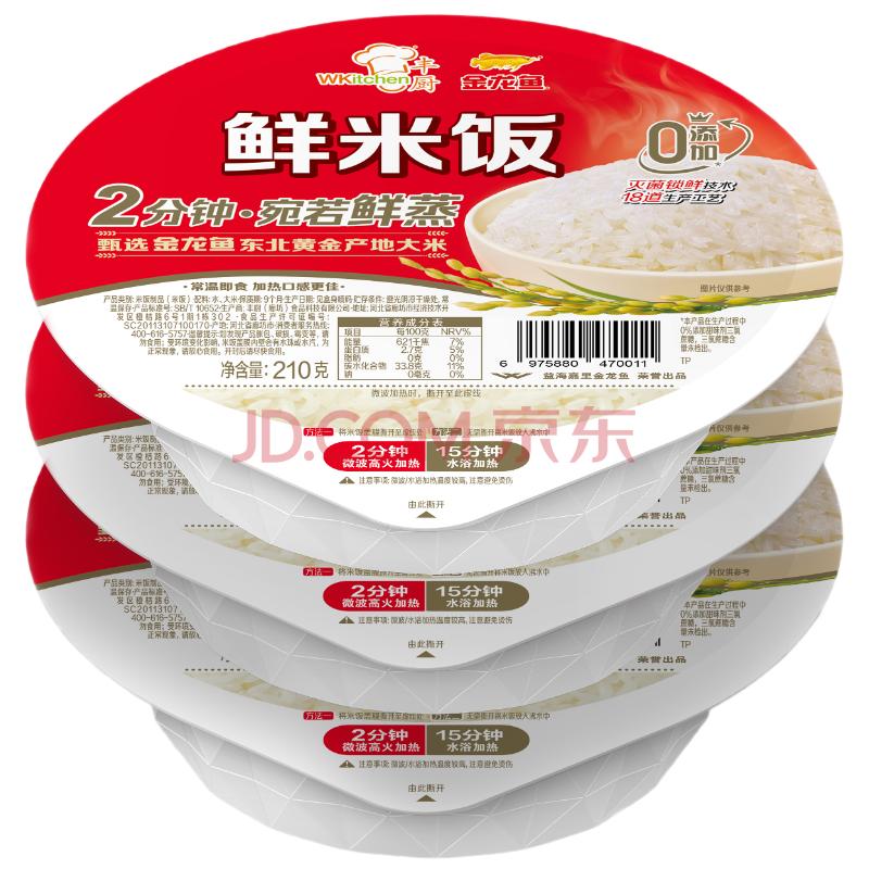 商品名称:金龙鱼丰厨 鲜米饭 210g*3 三联包 方便米饭 免蒸煮 微波加热即食米饭