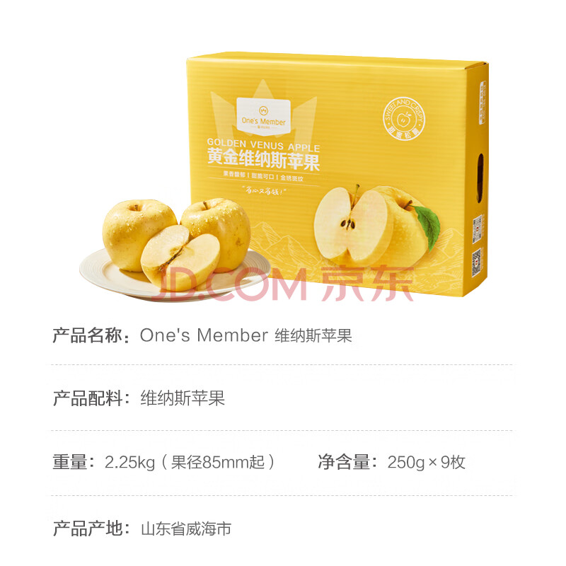 商品名称:One's Member黄金维纳斯苹果 单果250g起 9枚装 新鲜水果 源头直发 包邮
