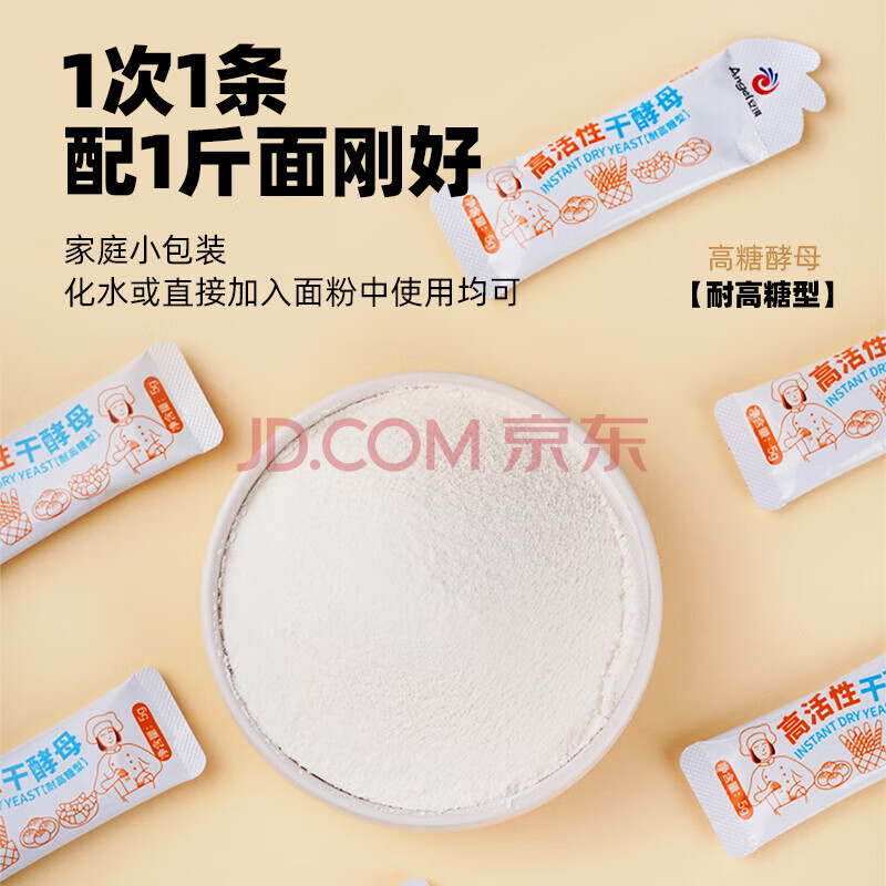 安琪高活性干酵母5g*8袋小包装低糖型家用发面包子馒头发酵粉烘焙原料