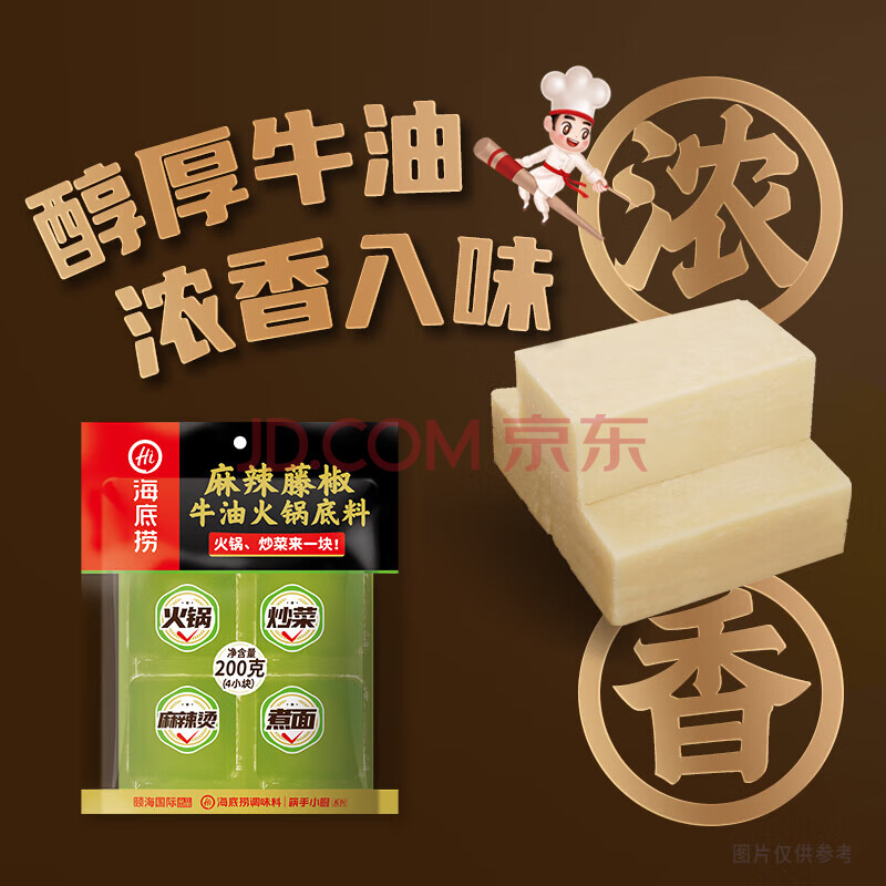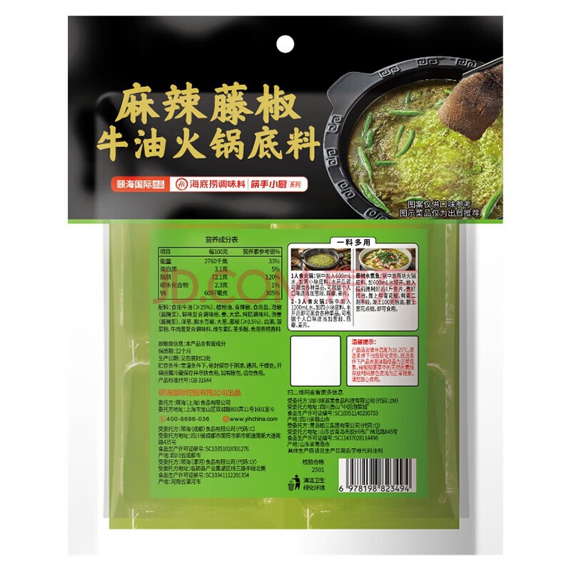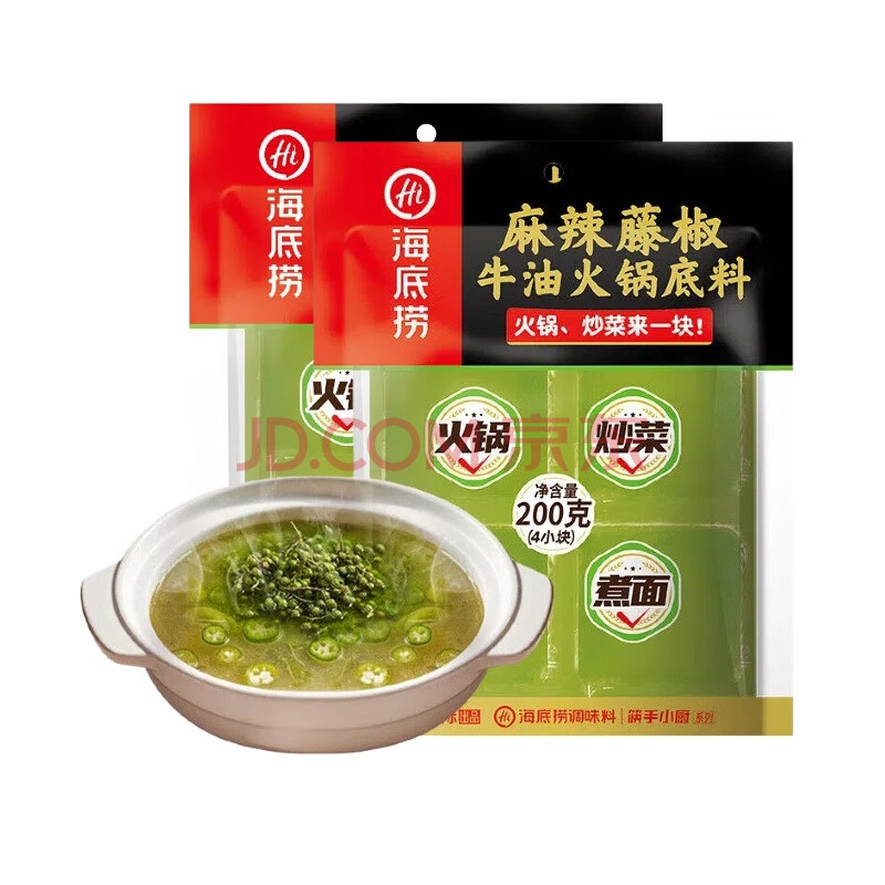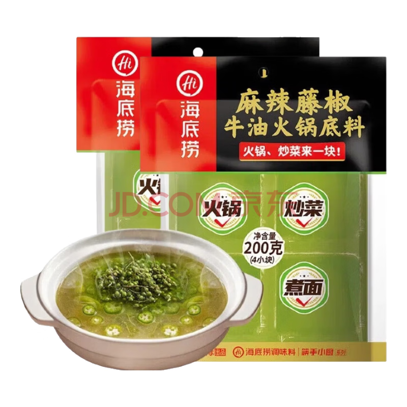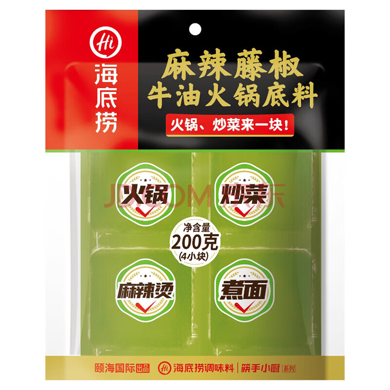 商品名称:海底捞麻辣藤椒火锅底料200g*2袋 内含4块 青花椒牛油小块调味料