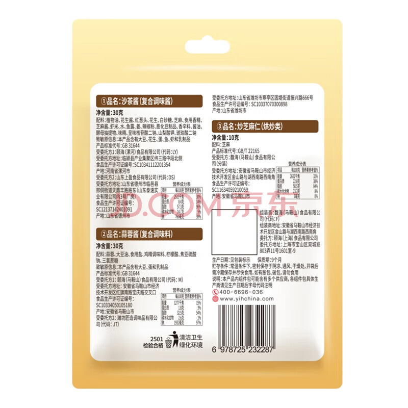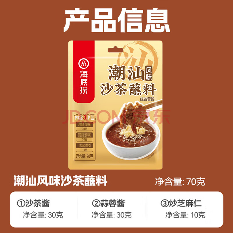 商品名称:海底捞潮汕风味沙茶蘸料70g*2袋牛肉火锅沙茶面