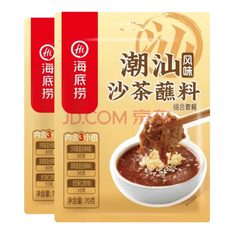 > 海底捞潮汕风味沙茶蘸料70g*2袋牛肉火锅沙茶面