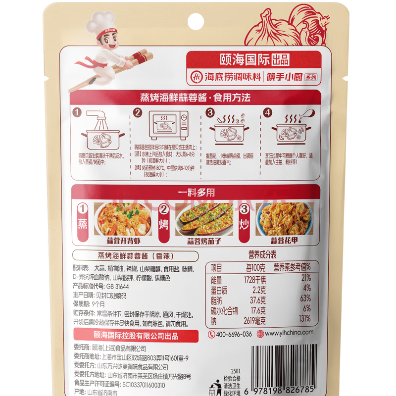 商品名称:海底捞蒜蓉酱香辣味200g 蒸烤海鲜小龙虾生蚝火锅调味料