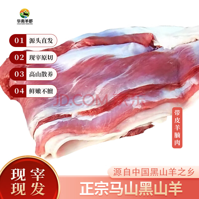 商品名称:趣尝鲜广西马山黑山羊带皮羊腩肉 净重3斤原切带皮羊肉高山散养源头直发