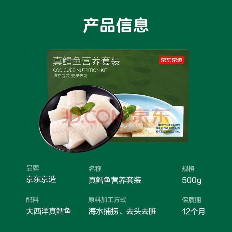 商品名称:京东京造 鲜来多大西洋真鳕鱼营养套餐500g 宝宝装儿童鳕鱼去皮刺婴儿食谱