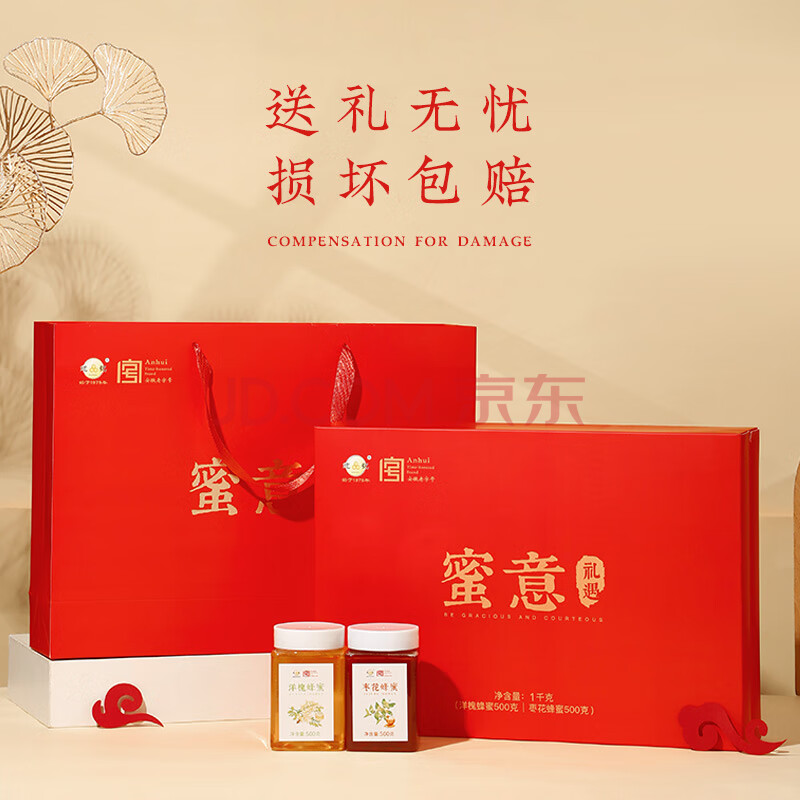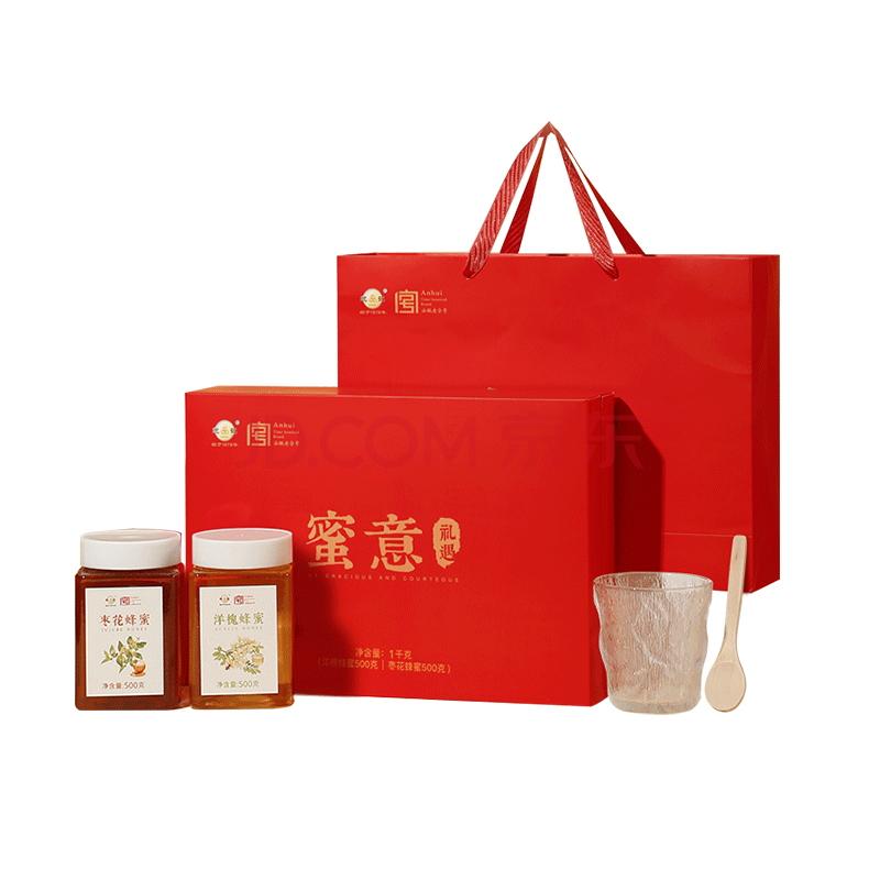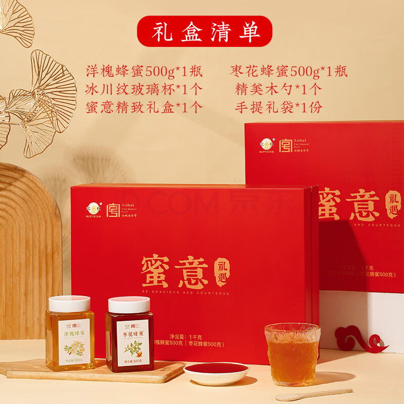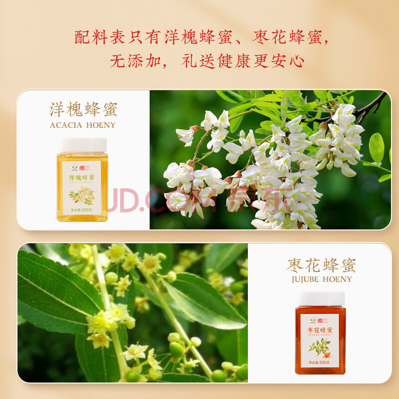 商品名称:鲍记蜜意礼盒500g*2瓶洋槐枣花蜂蜜送父母长辈节日礼物