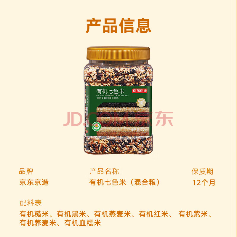 商品名称:京东京造有机七色糙米2.4斤 糙米黑米杂粮粗粮大米伴侣