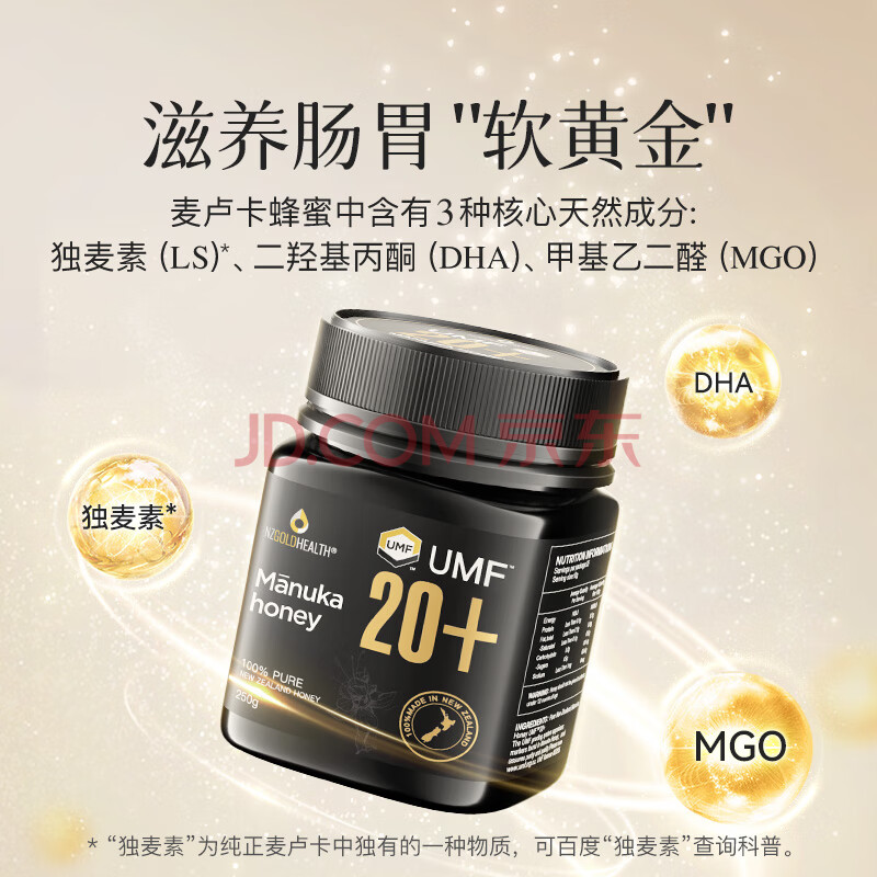 商品名称:蜜兰达(NZGOLDHEALTH)新西兰进口麦卢卡蜂蜜 UMF20+250g*2 年货节礼盒礼品过年送礼长辈