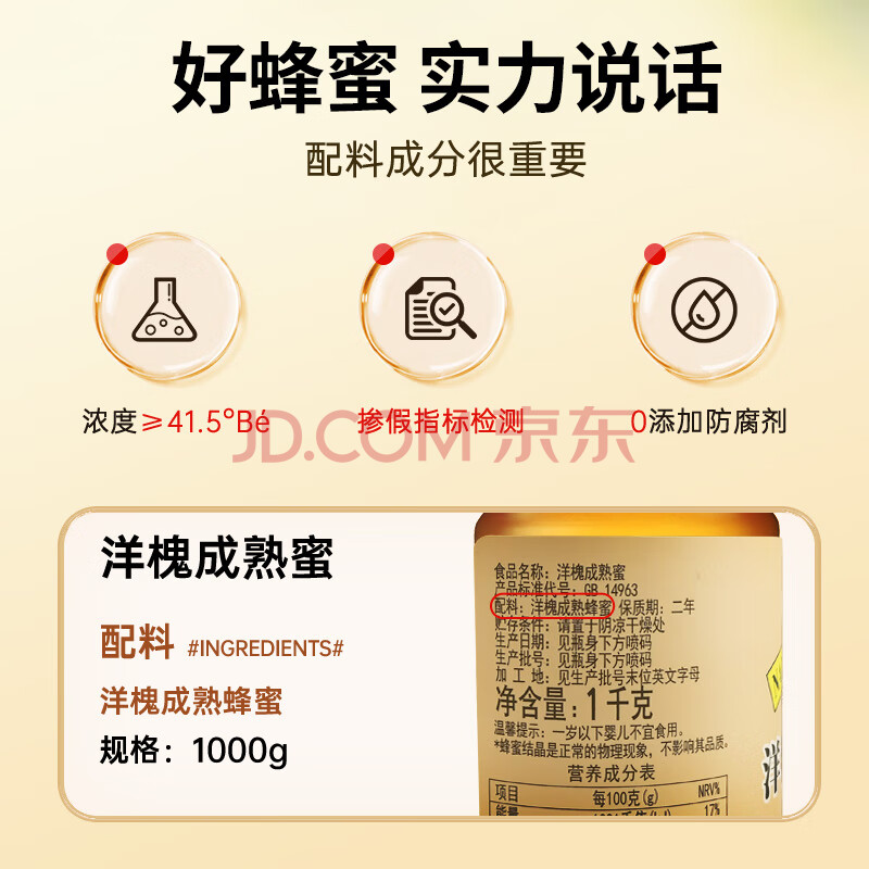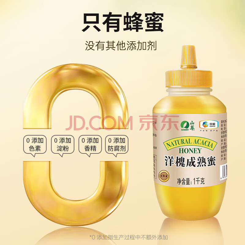商品名称:山萃中粮蜂蜜 成熟洋槐蜜1kg 野生天然纯正土蜂蜜 挤压瓶年货节礼物