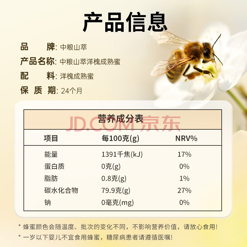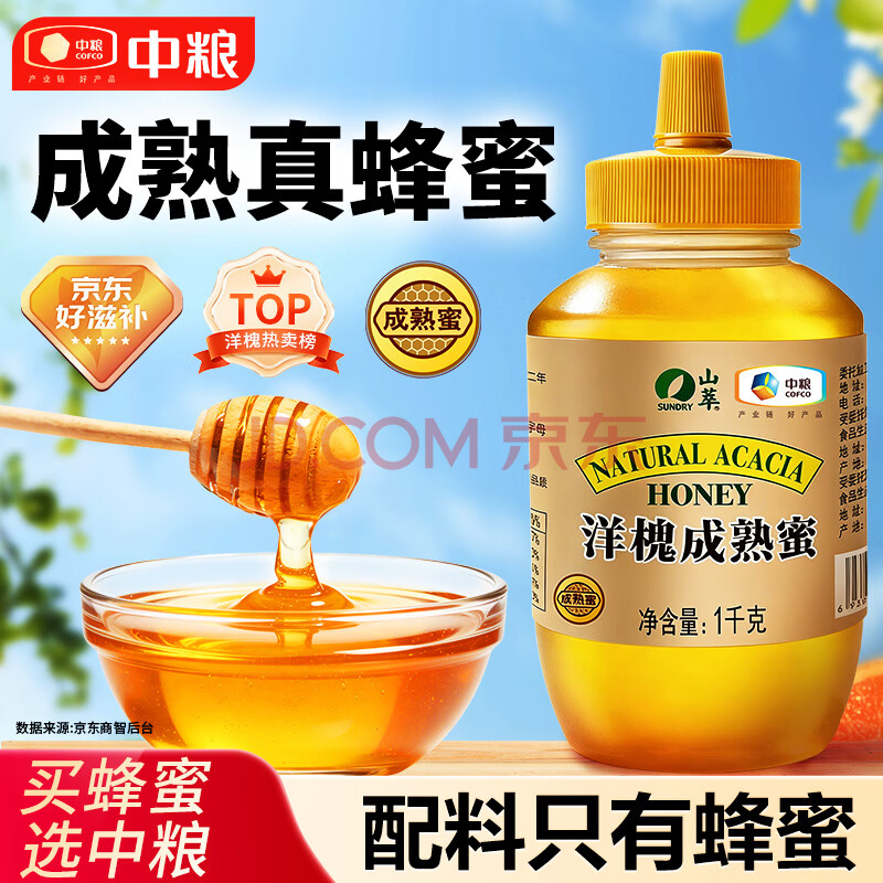 商品名称:山萃中粮蜂蜜 成熟洋槐蜜1kg野生天然纯正土蜂蜜挤压瓶央企出品送礼品