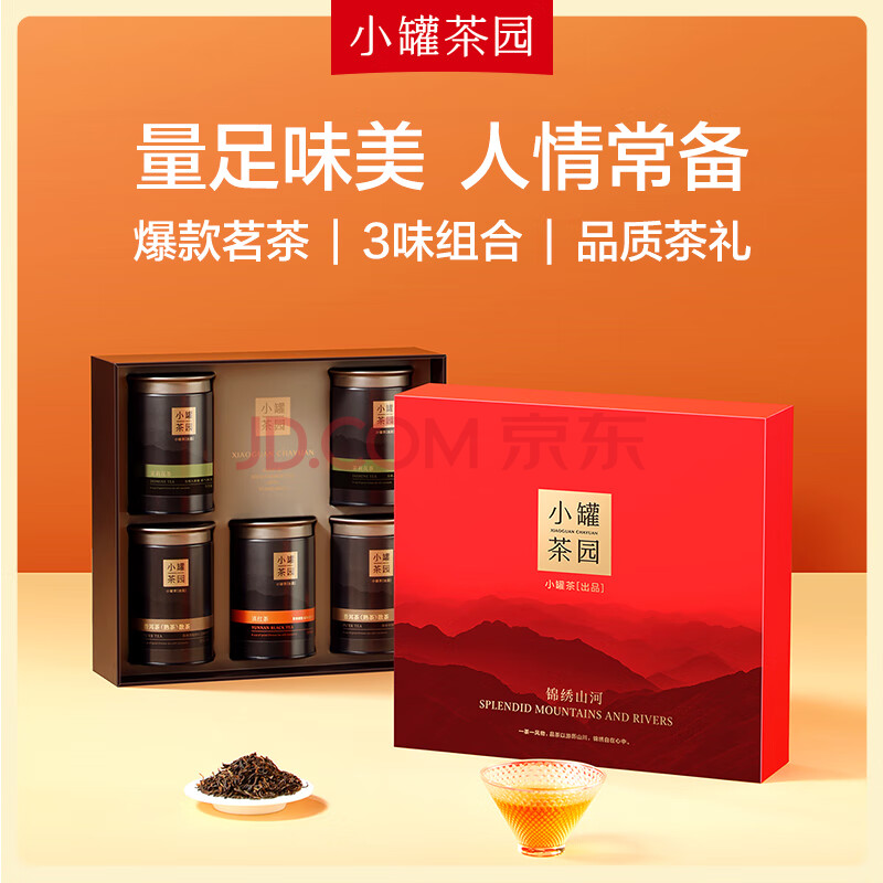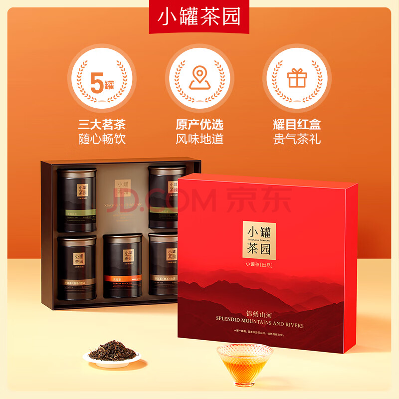 商品名称:小罐茶茶园·锦绣山河茉莉花茶普洱滇红 茶叶一级5罐300g茶礼送长辈礼盒