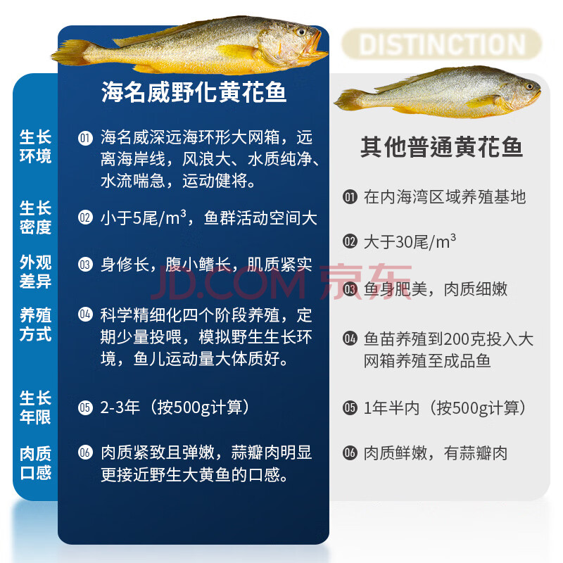 商品名称:海名威 冷冻深海野化三去黄花鱼 宁德大黄鱼800g/2条装盒装 海鱼 年货节