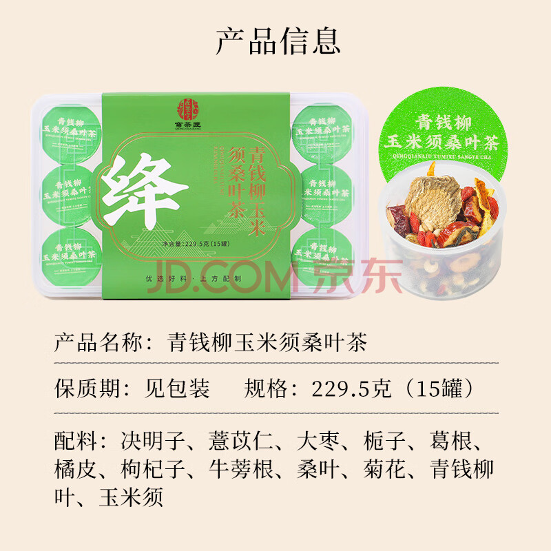 商品名称:穹茶匠 青钱柳玉米须桑叶茶15罐 决明子薏仁葛根枸杞牛蒡菊花消肿刮油