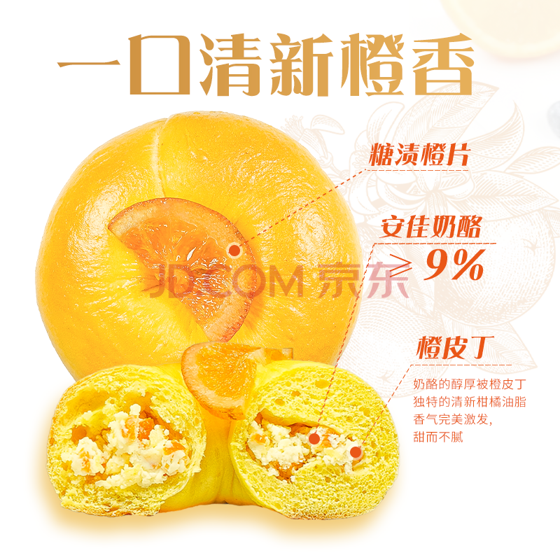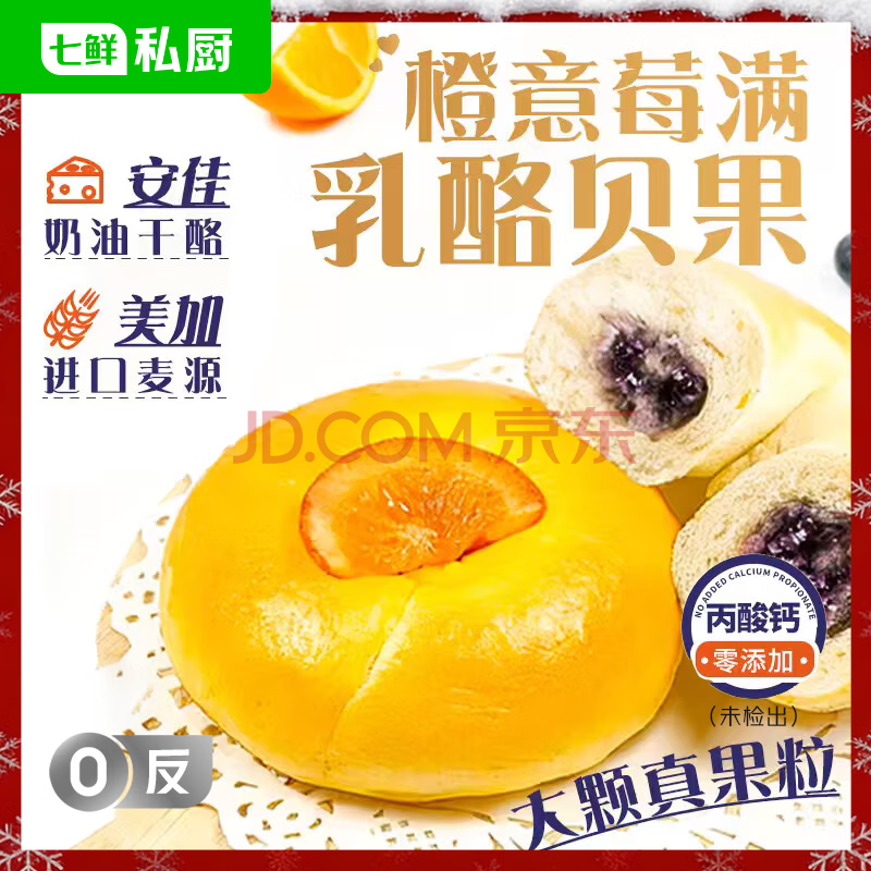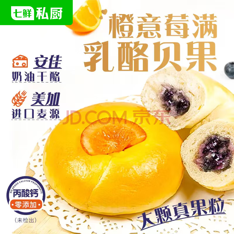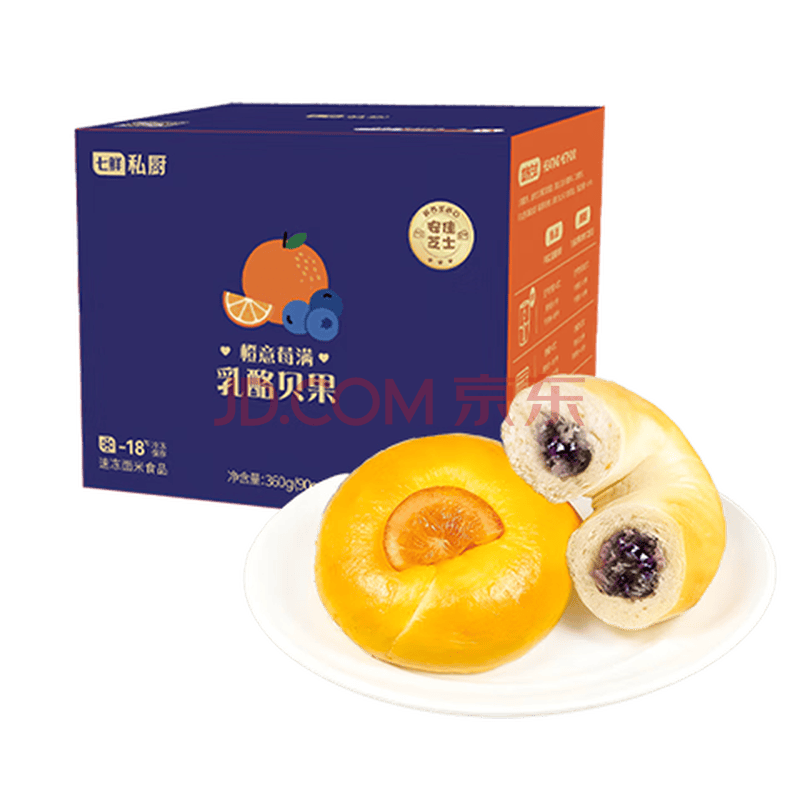 商品名称:七鲜私厨橙意莓满乳酪贝果360g4枚健康早餐面包安佳零食速食