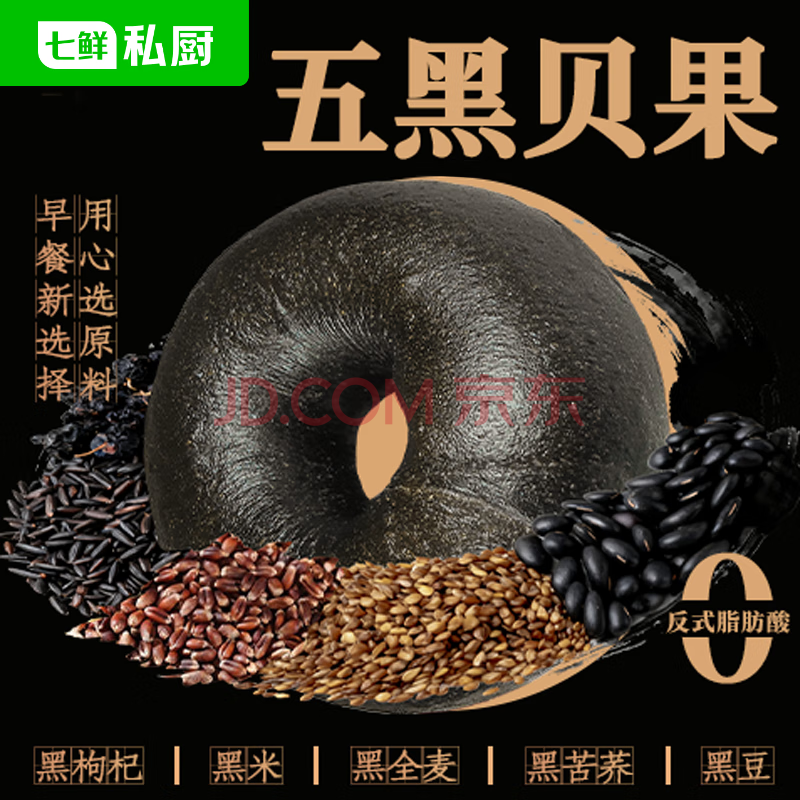 商品名称:七鲜私厨五黑贝果360g4枚黑芝麻养生健康早餐面包欧包速食
