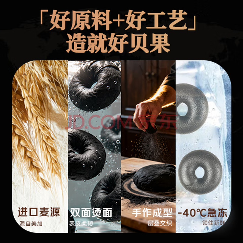 七鲜私厨五黑贝果360g4枚黑芝麻养生健康早餐面包欧包速食