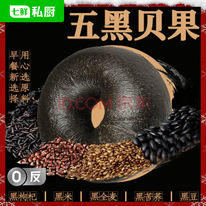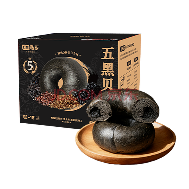 > 七鲜私厨五黑贝果360g4枚黑芝麻养生健康早餐面包欧包速食