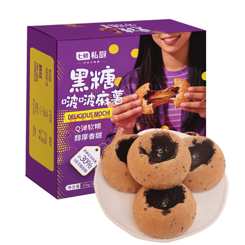 商品名称:七鲜私厨黑糖啵啵麻薯半成品270g9粒装早餐面包甜品休闲零食甜点速食