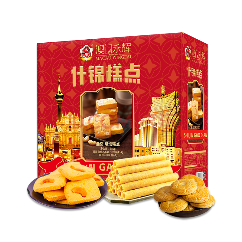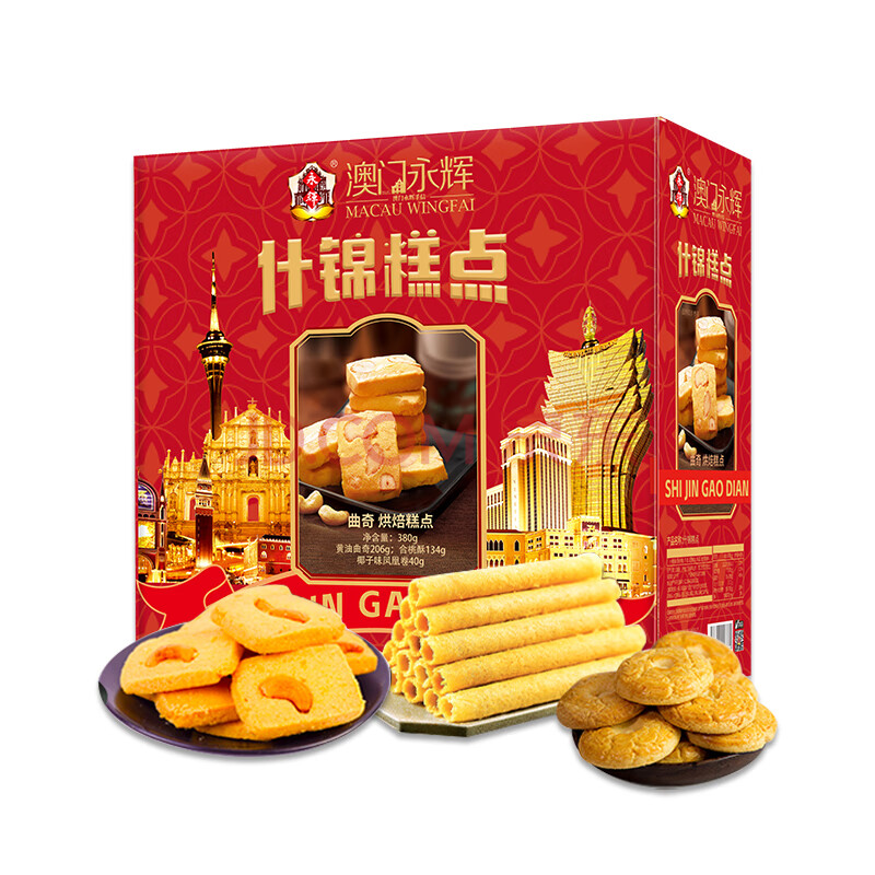商品名称:永辉澳门特产礼盒蛋卷杏仁饼合桃酥曲奇广式糕点手信什锦糕点礼盒380g