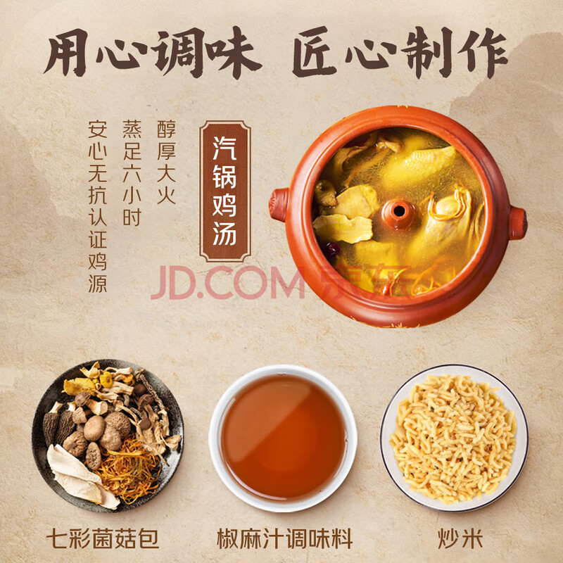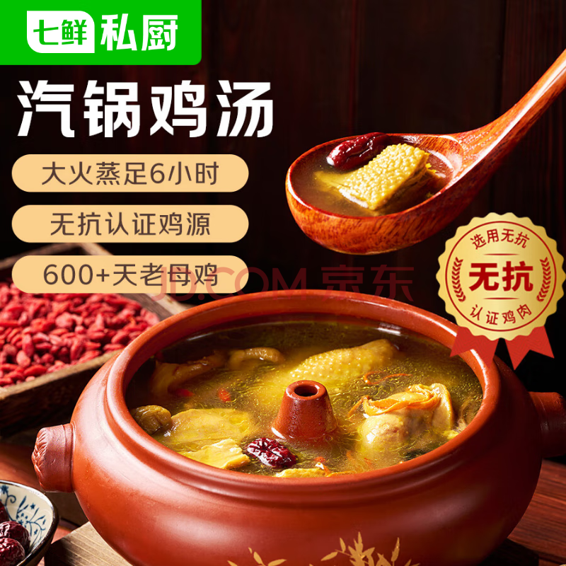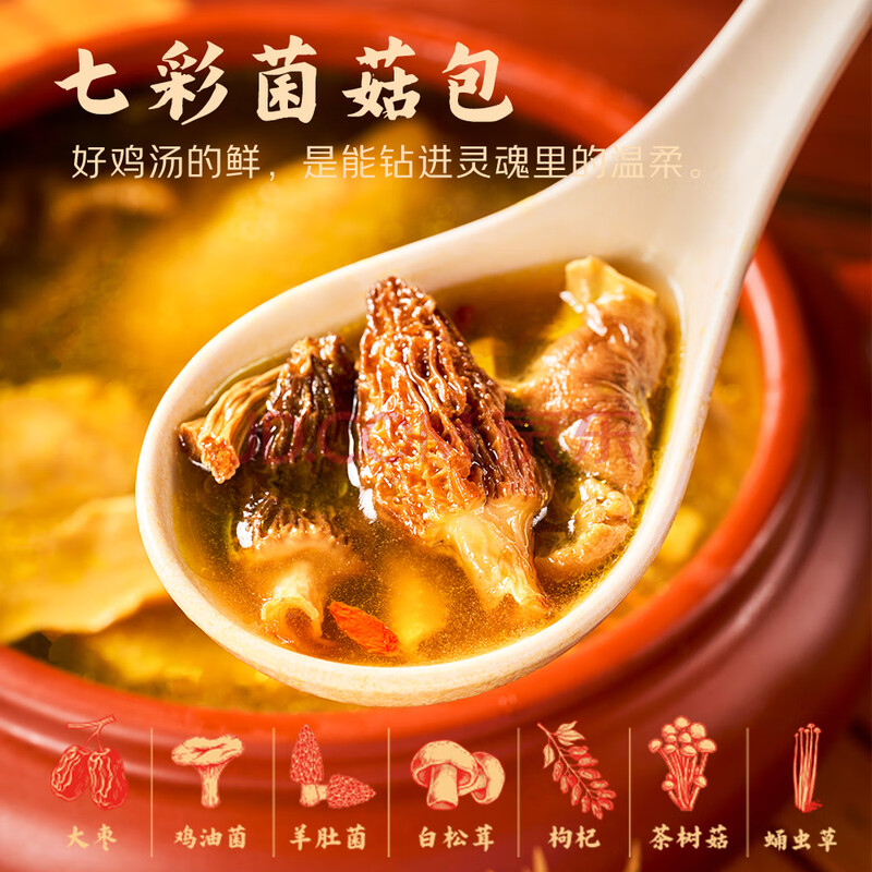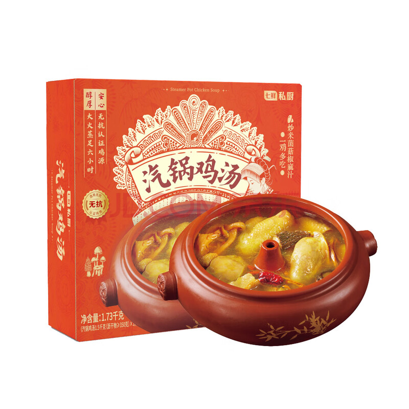 商品名称:七鲜私厨 云南菌菇老母鸡汤3.46斤(半只整鸡) 加热即食汽锅鸡预制菜速食