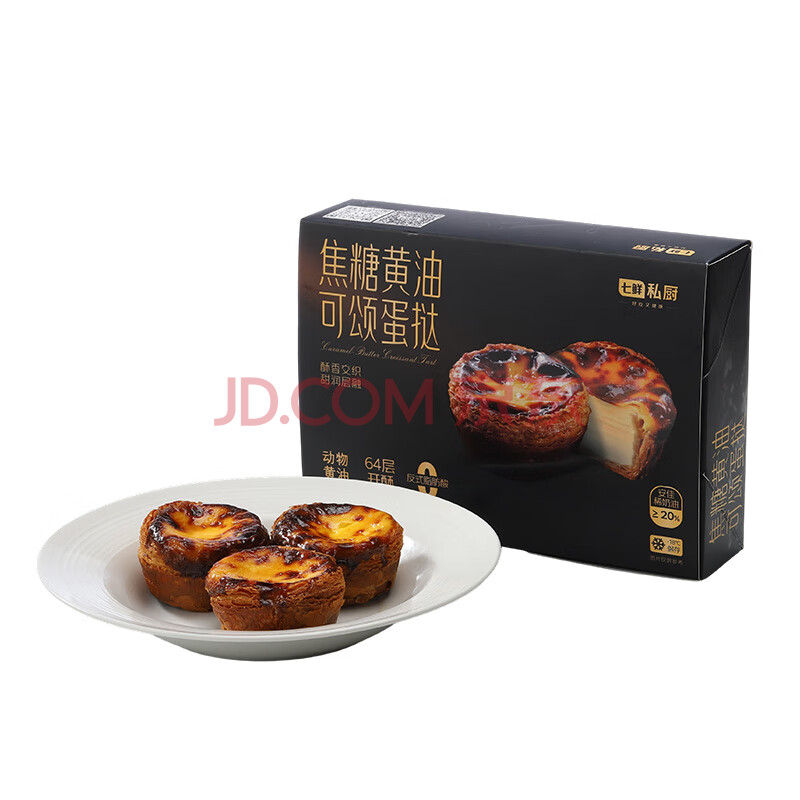商品名称:七鲜私厨焦糖黄油可颂蛋挞6粒480g冷热双吃即食黄油挞皮早餐零食甜品点心
