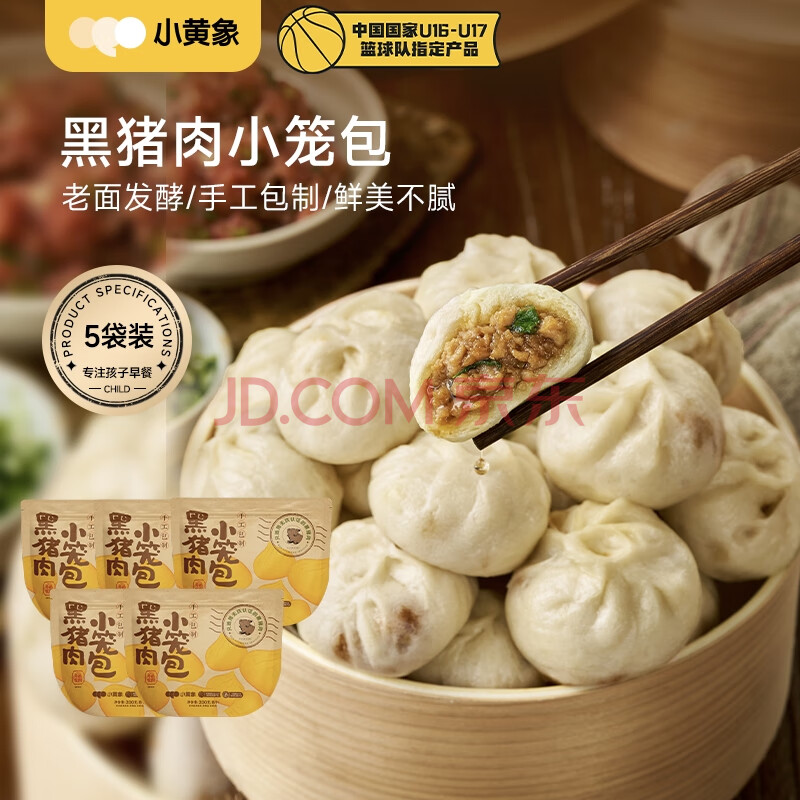 商品名称:小黄象 黑猪肉小笼包200g*5袋40个老面纯手工包子儿童面点早餐年货送礼