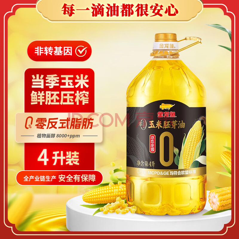 商品名称:金龙鱼悠态庄园 零反式脂肪玉米胚芽油 非转基因 压榨 一级食用油 4L